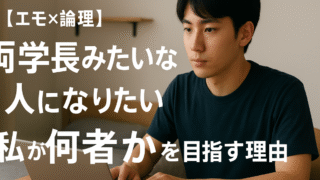 生きるためのスキル 【エモ×論理】「両学長みたいな人になりたい」私が“何者か”を目指す理由 両学長に憧れて「自分も何者かになりたい」と思った大学生のリアル。等身大の悩みと行動を、エモ×論理で綴ります。 2025.09.16 2025.10.02 生きるためのスキル